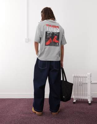 Timberland Timbs 6" back print oversized t-shirt in grey | ASOS