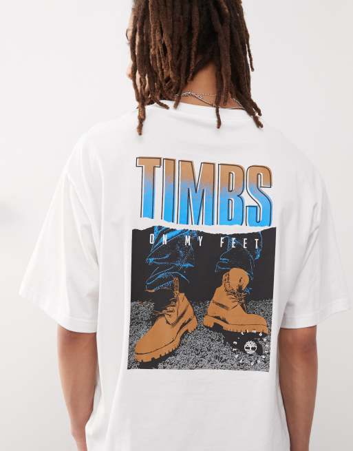 Timberland Timbs 6" back print oversized t-shirt in white | ASOS