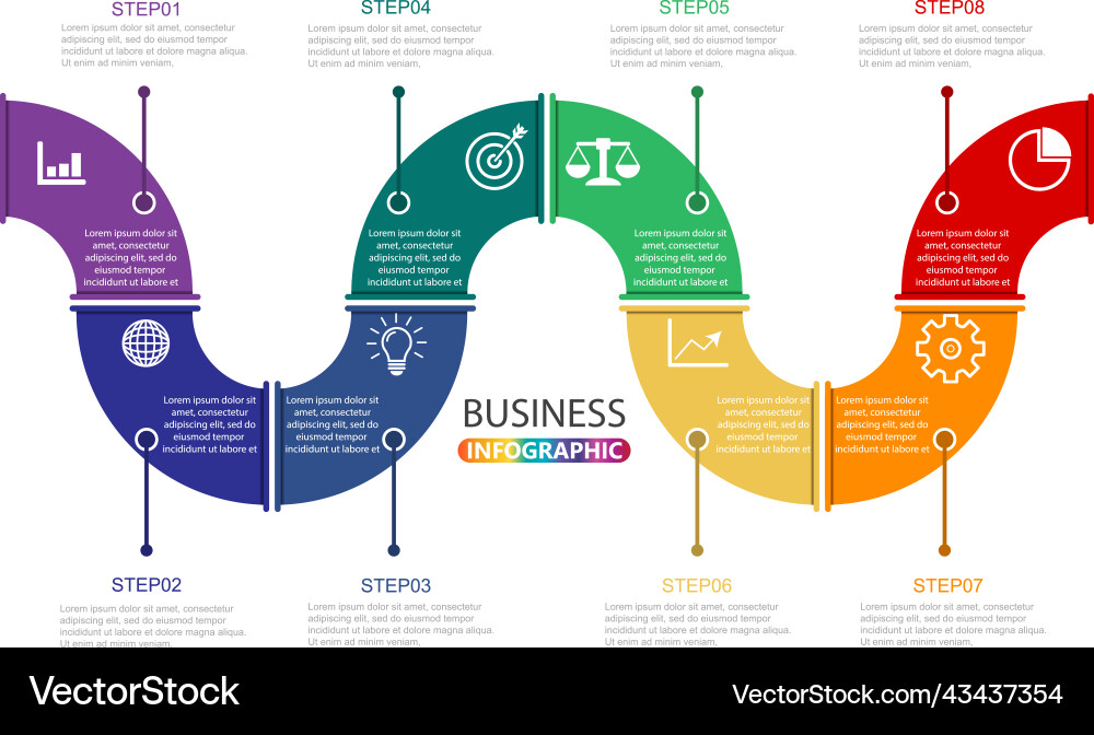Timeline infographics design template with 8 Vector Image