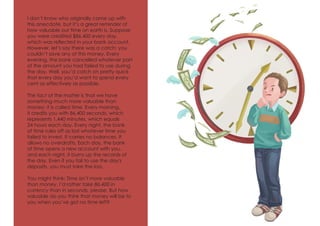 Money can always be earned and generated, but time is irreplaceable ...