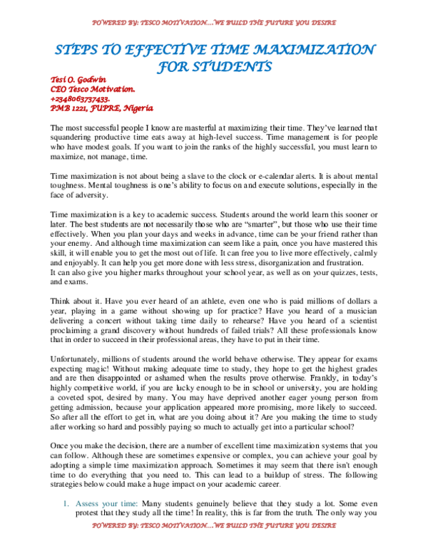 (PDF) STEPS TO EFFECTIVE TIME MAXIMIZATION FOR STUDENTS