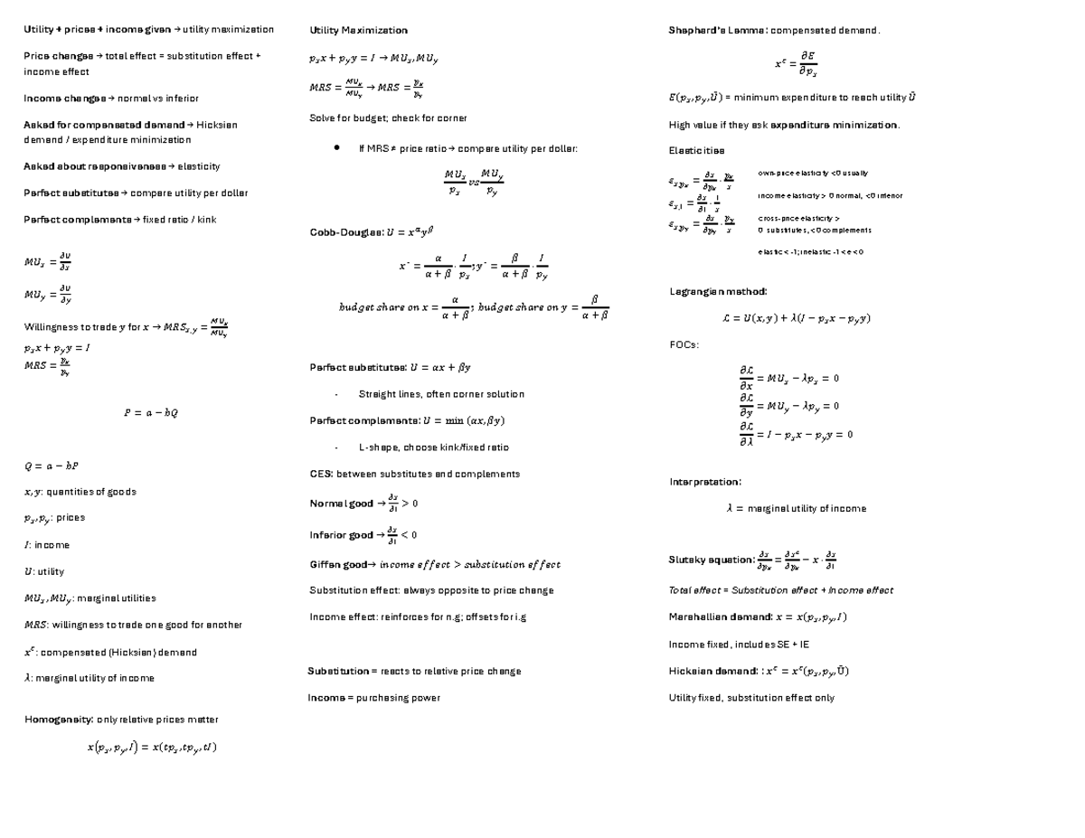 Mid-term #1 Cheat Sheet – Microeconomics I: Utility Maximization ...