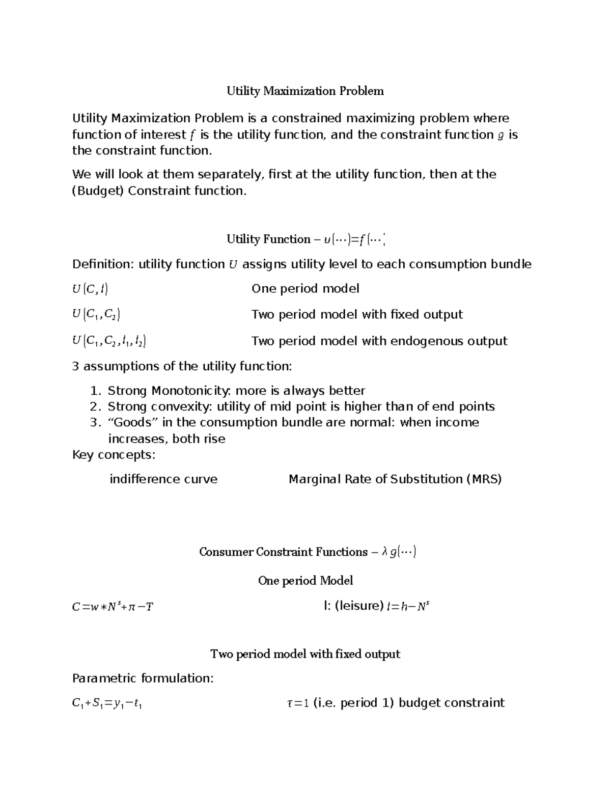 ECON 303 Utility Maximization Problem: Key Concepts & Functions - Studocu