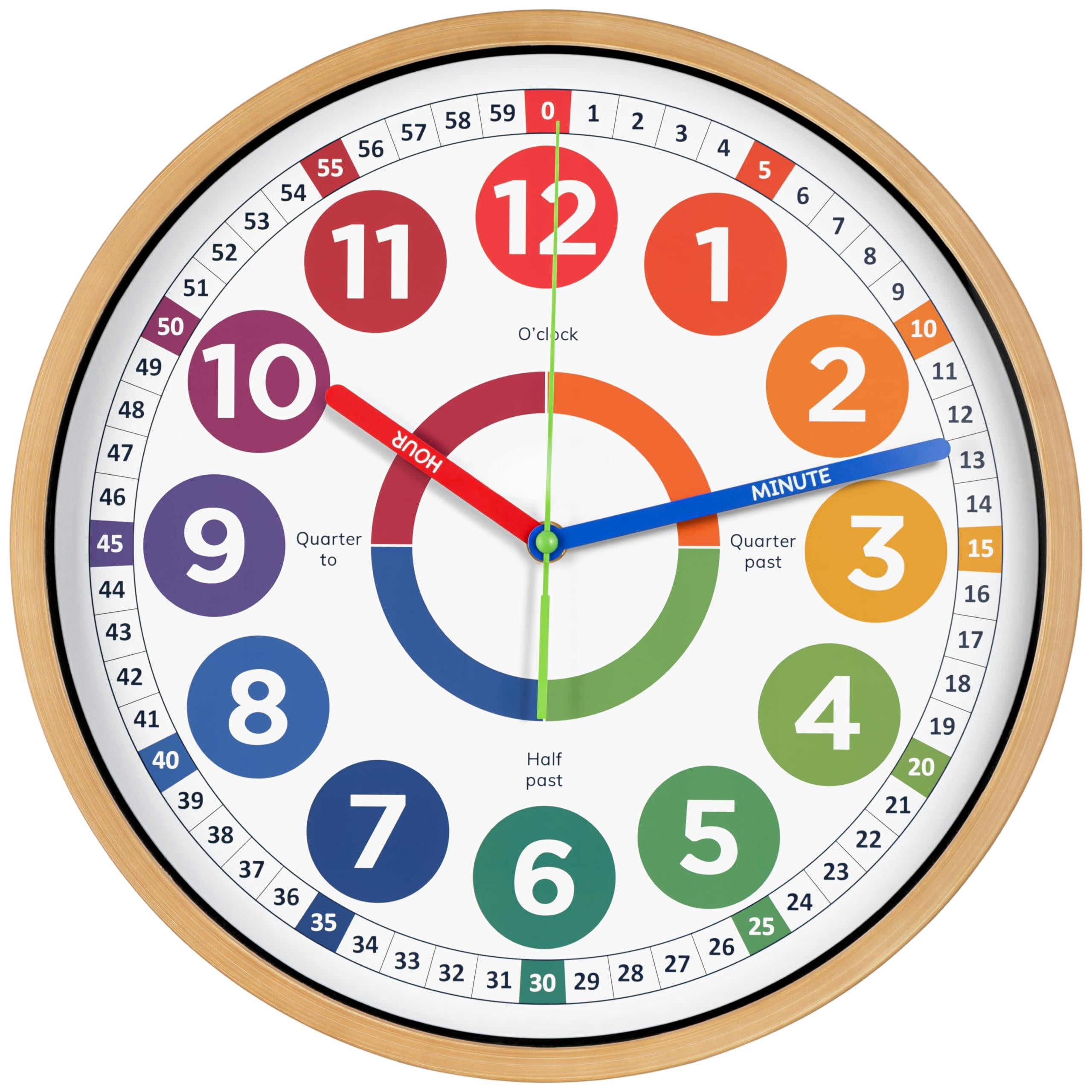 Clock - Silent 14" Analog Learning Wall Clocks Award-winning Telling ...