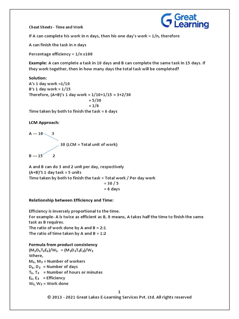 Cheat Sheet - Time and Work | PDF | Teaching Methods & Materials ...