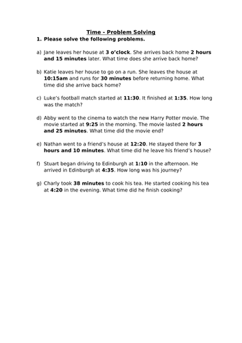 Time - Problem Solving | Teaching Resources
