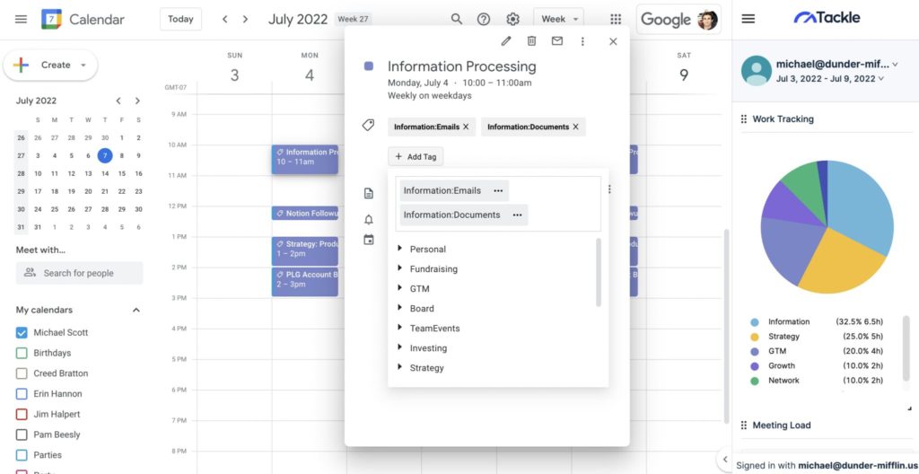 Tracking And Analysis With Google Calendar Time Tracking - Tackle