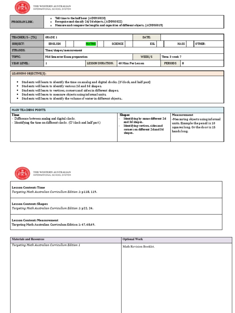 Time Shapes Measurement | PDF | Education Theory | Curriculum