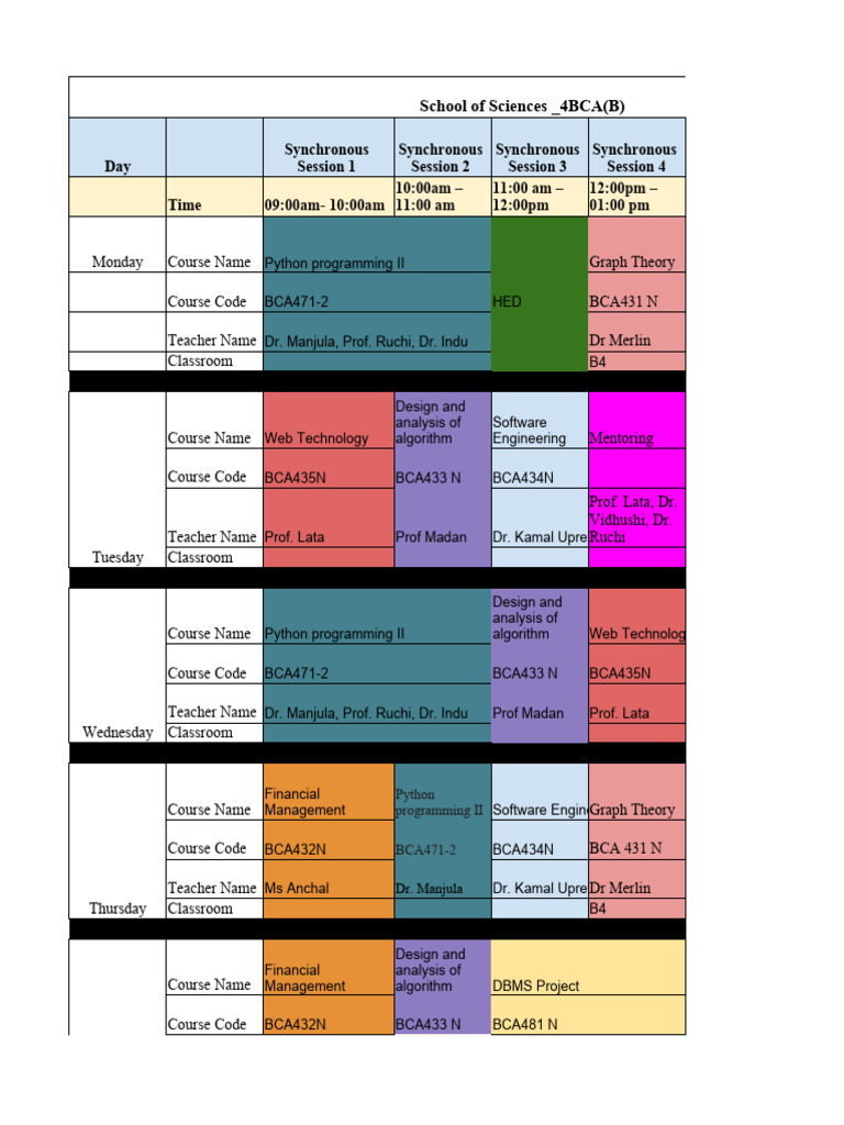 Time Table | PDF | Computer Science | Computing