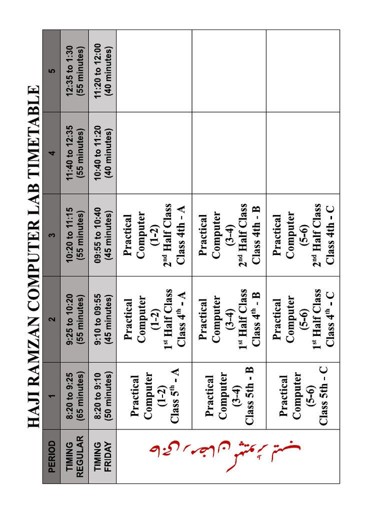 Computer Lab Time Table Primary Section | PDF