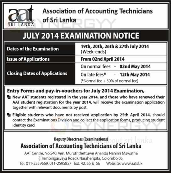 AAT Srilanka – July 2014 Examination Timetable Issue – Education SynergyY