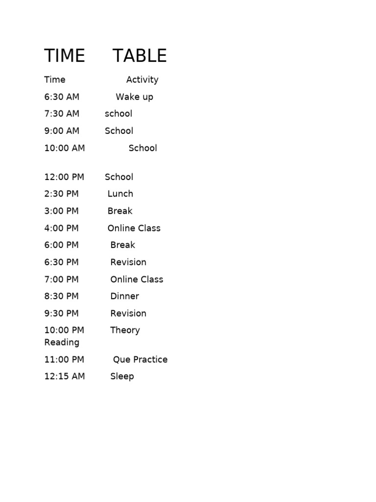 Timetable Format For Daily Routine at Hubert Moreno blog