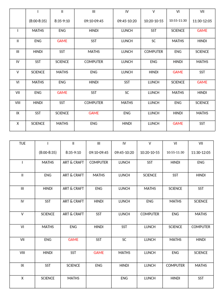 PRINCIPLES FOR PREPARATION OF TIME TABLE IN EDUCATION
