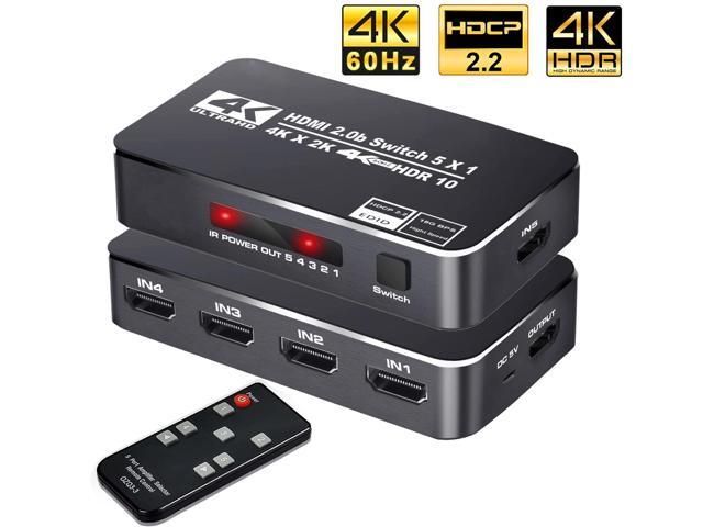 4K@60Hz 5x1 HDMI Switch, HDMI 2.0b Switch 5 in 1 Out, 4K HDMI Switcher ...