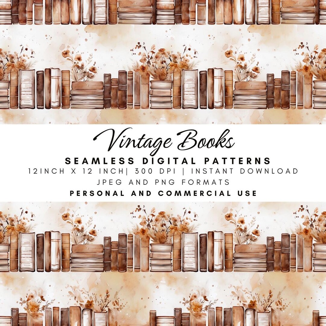 Repeating Book Pattern | 6 Seamless Prints, Graphic Digital Paper ...