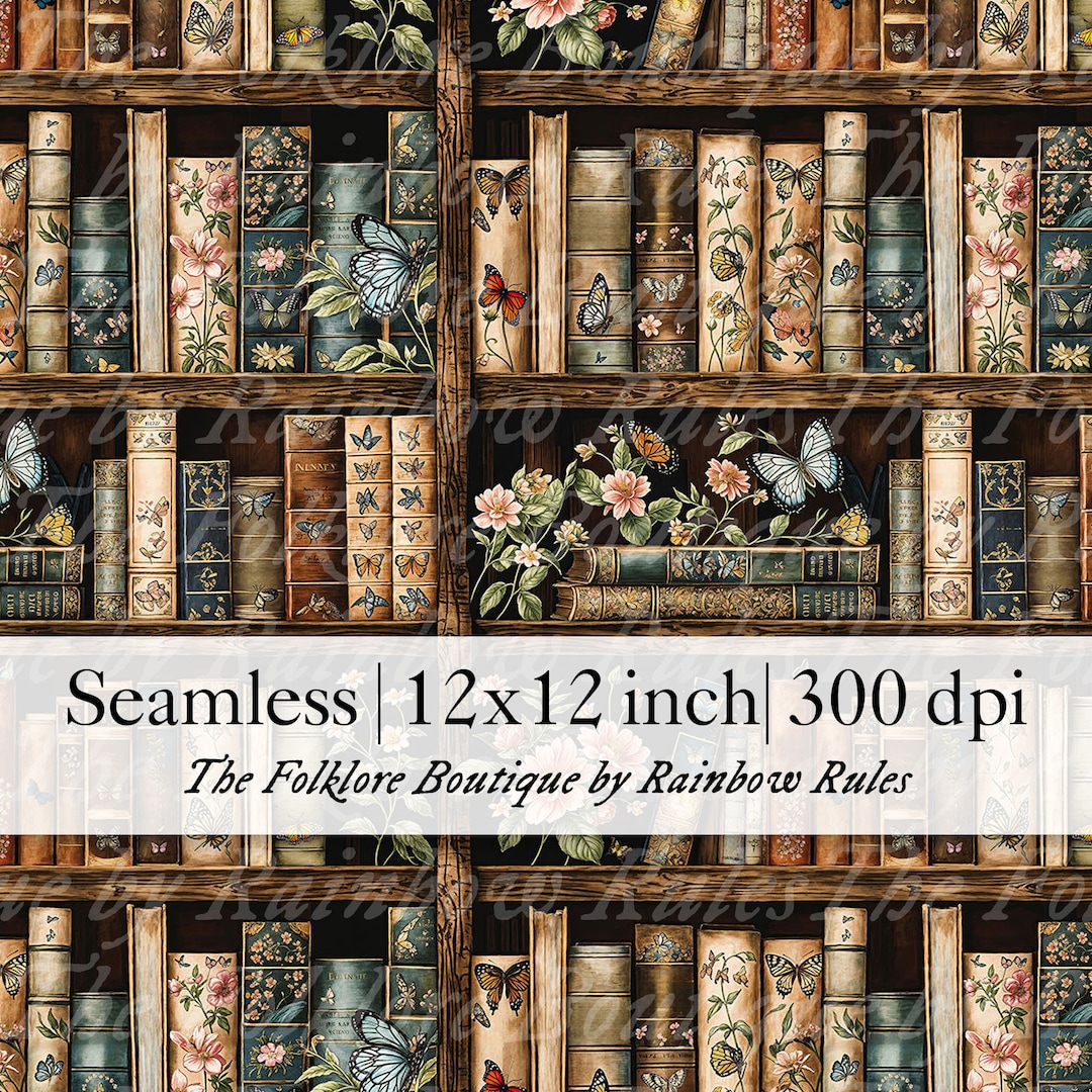 Vintage Books & Butterflies - Seamless Pattern Premium Digital Paper ...