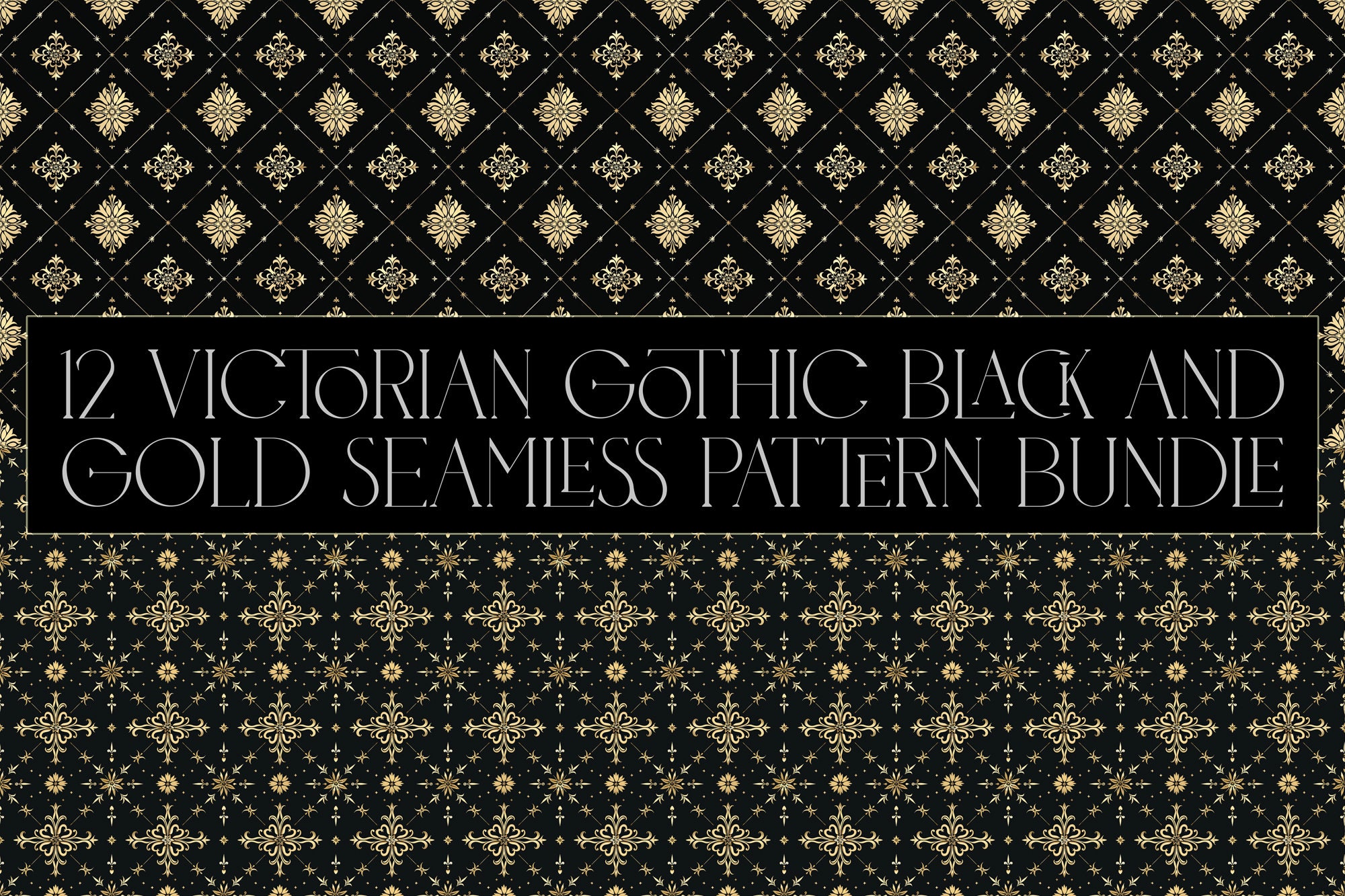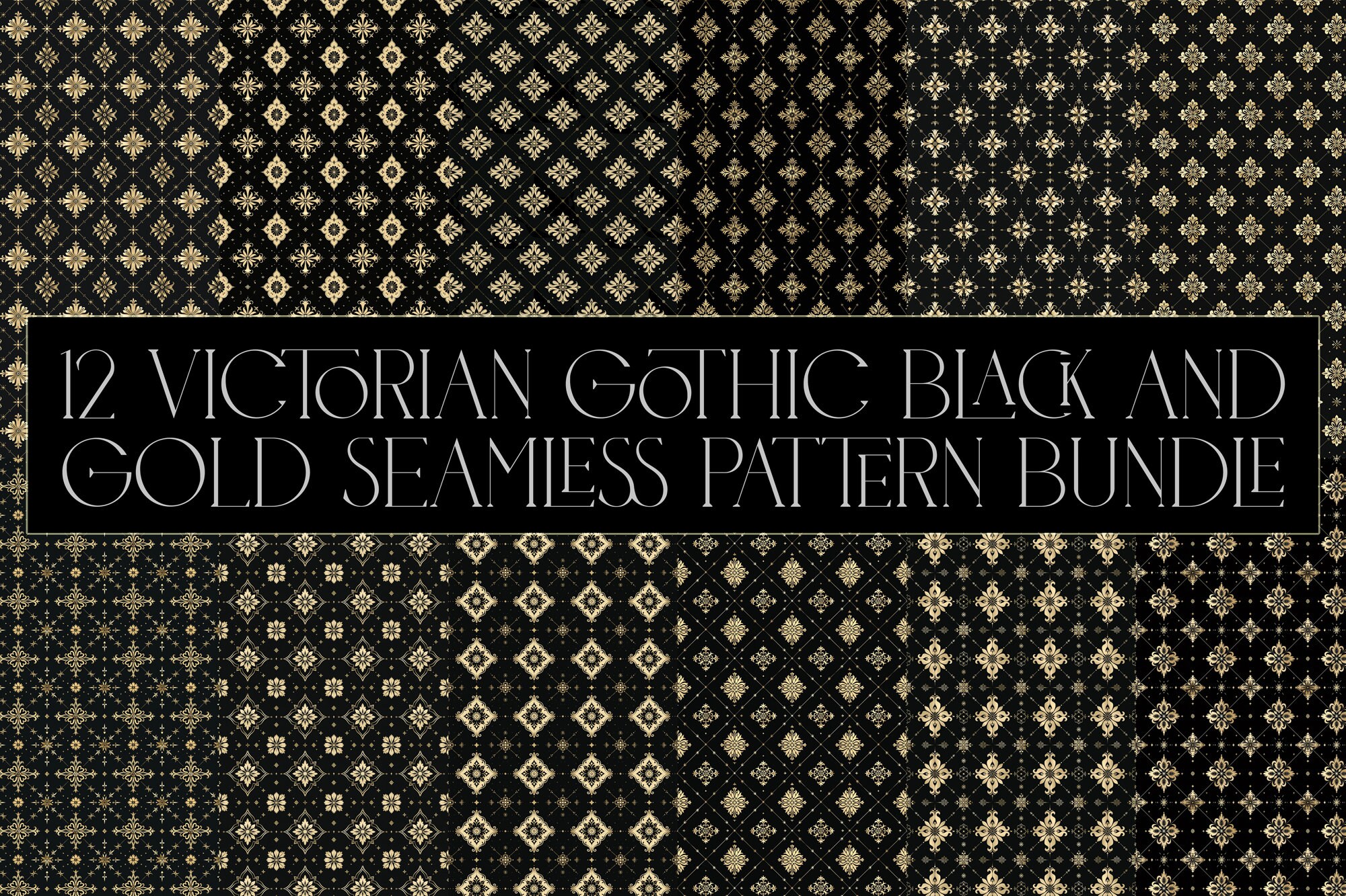 12 Victorian Gothic Black and Gold Seamless Pattern Bundle - Digital ...