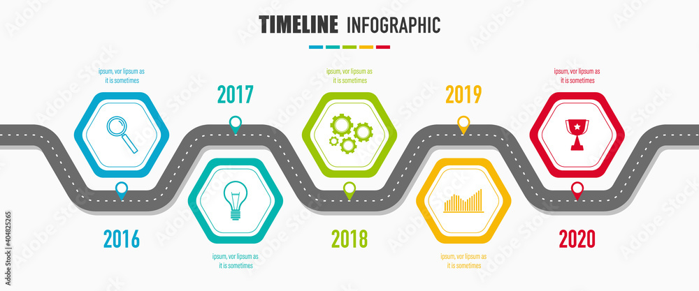 Timeline Creator infographic template. 5 Step timeline journey ...