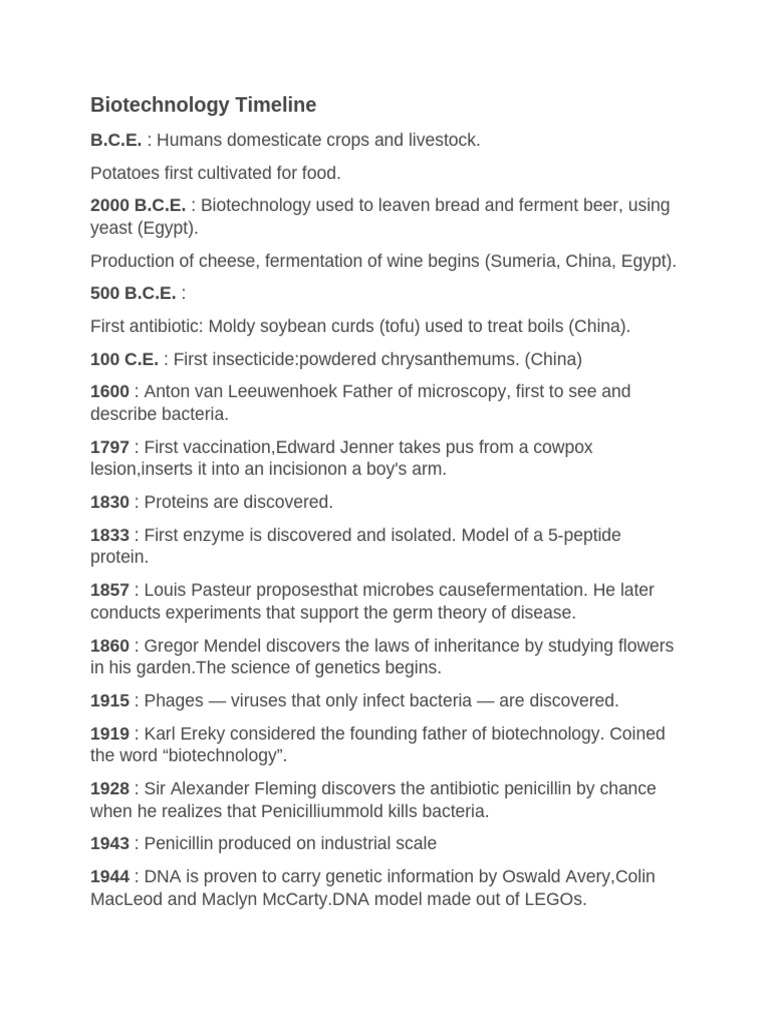 Biotechnology History Timeline | PDF | Genetic Engineering ...