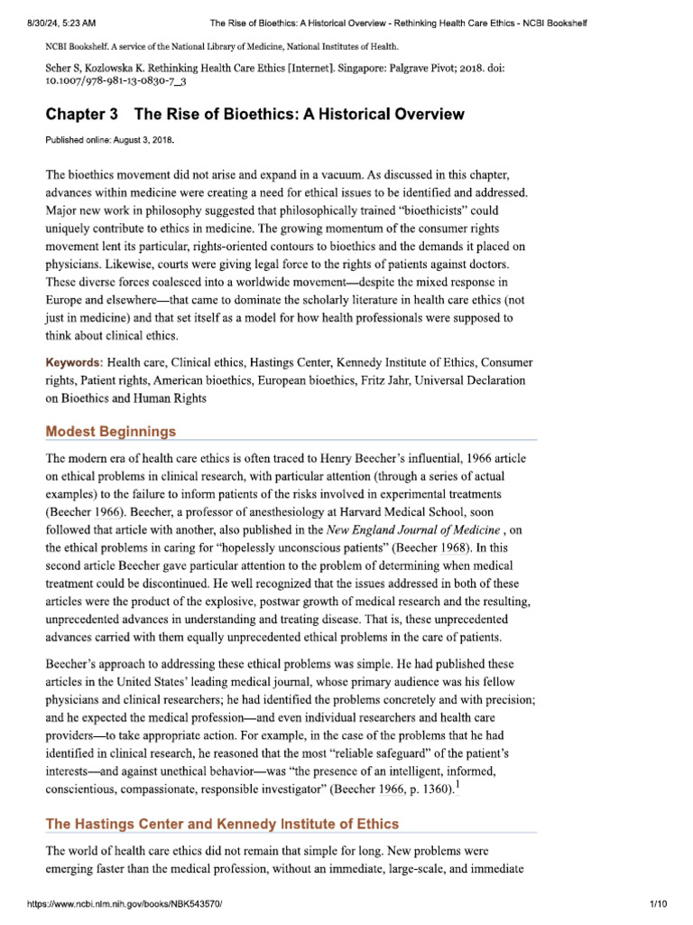 Module 1: History of Bioethics – Learn and Apply Bioethics