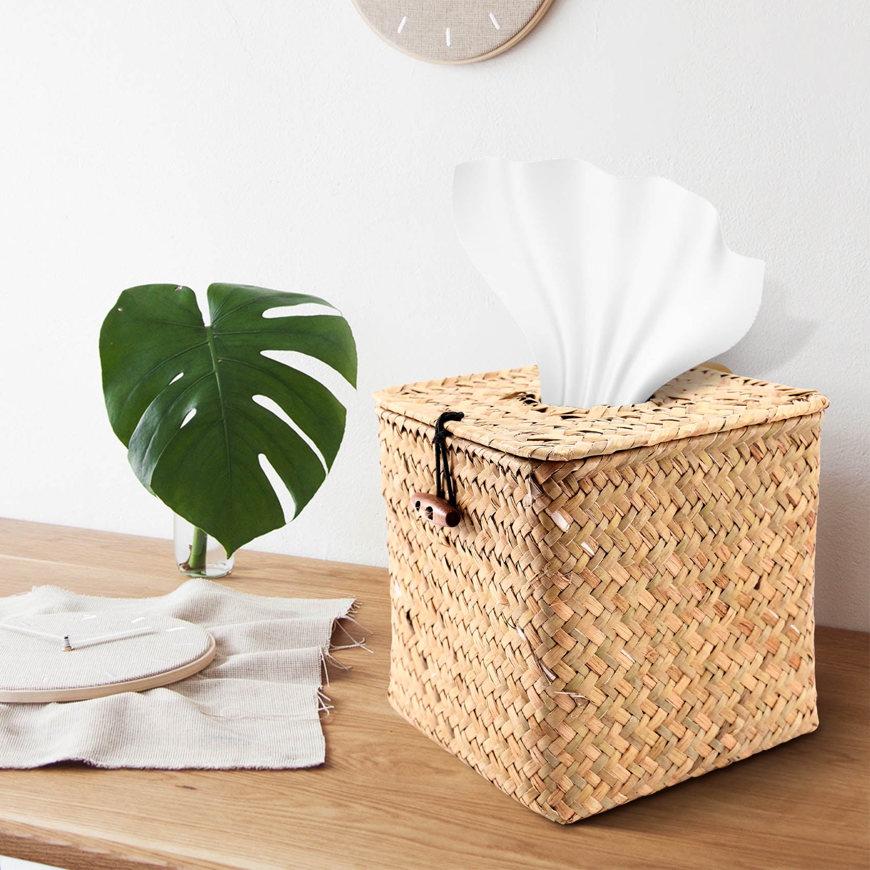 2 Pack Square Seagrass Tissue Box - Decorative Woven Paper Holder ...
