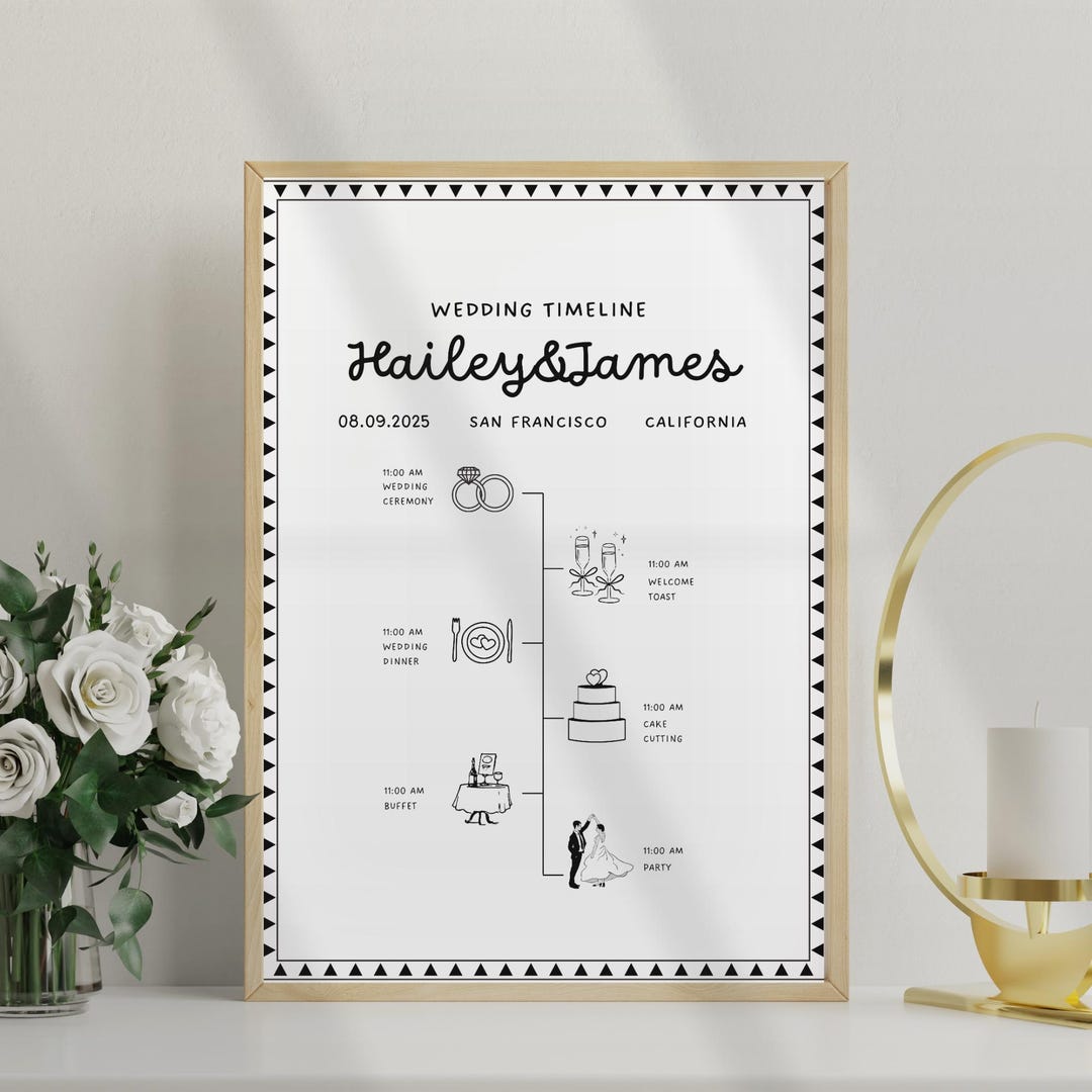 Handwritten Wedding Timeline Sign: Editable Canva Template (digital ...