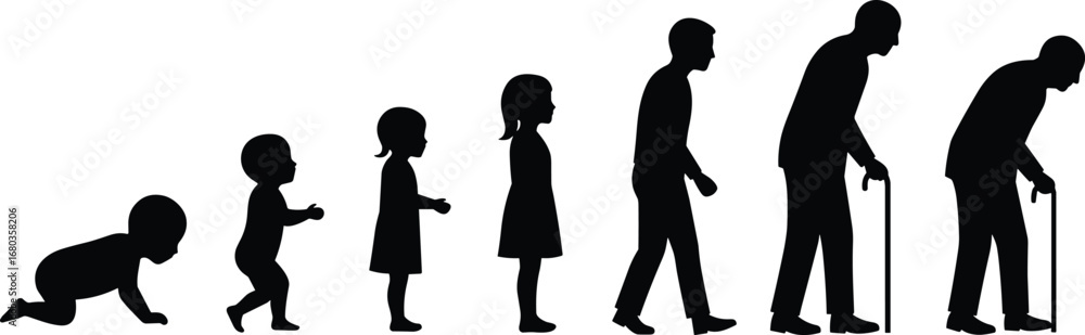 Human life cycle silhouette, from baby to elderly, aging stages, growth ...