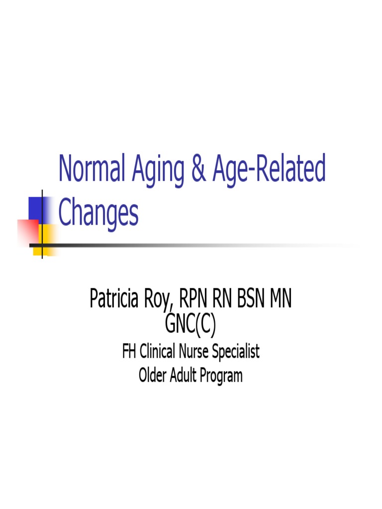 Normal Aging & Age-Related Changes: Patricia Roy, RPN RN BSN MN GNC (C ...