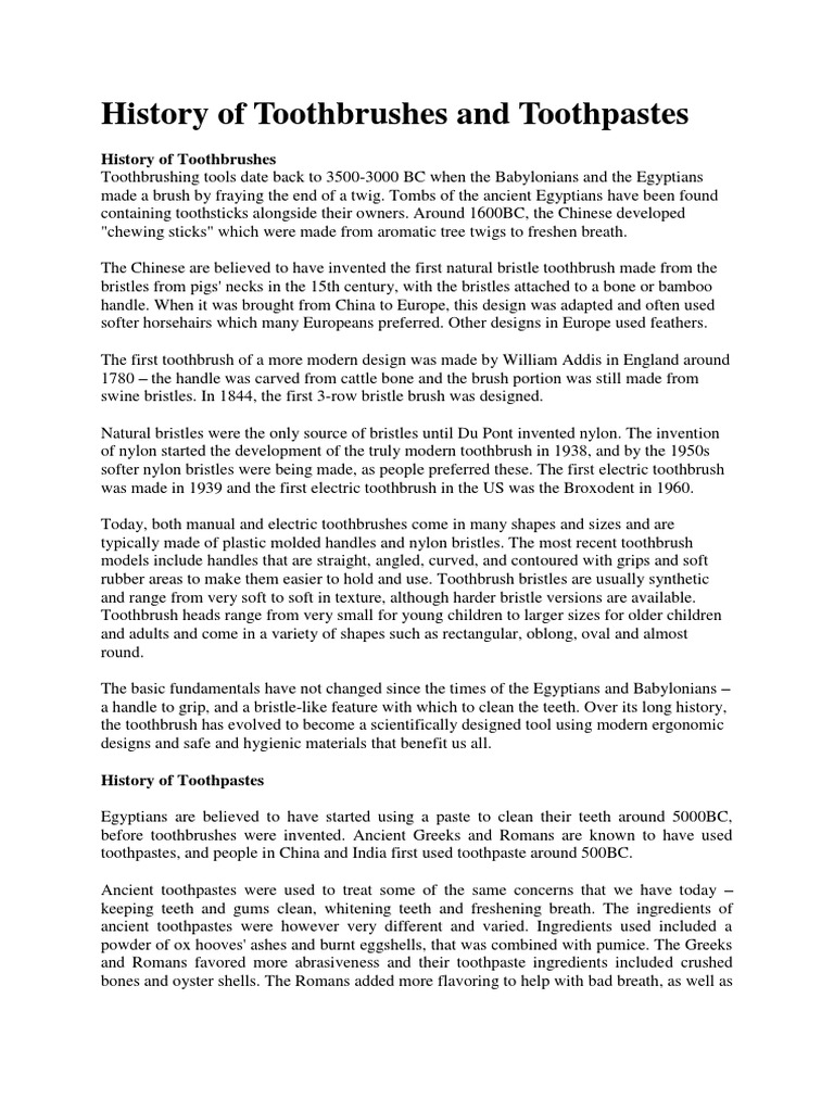 History of Toothbrushes and Toothpastes | PDF | Toothbrush | Survey ...
