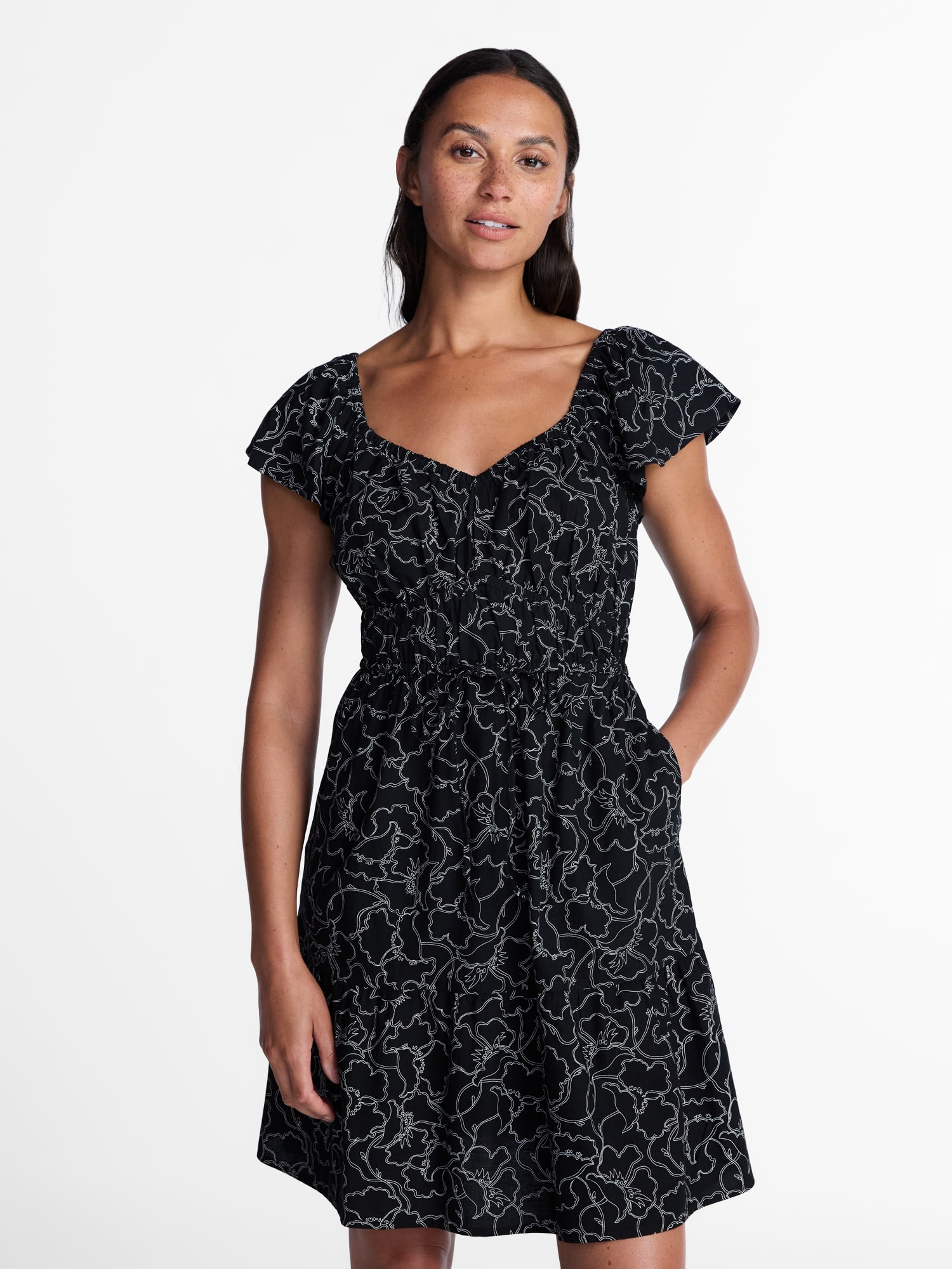 Time and Tru Women's Cinched Waist Mini Dress with Flutter Sleeves ...