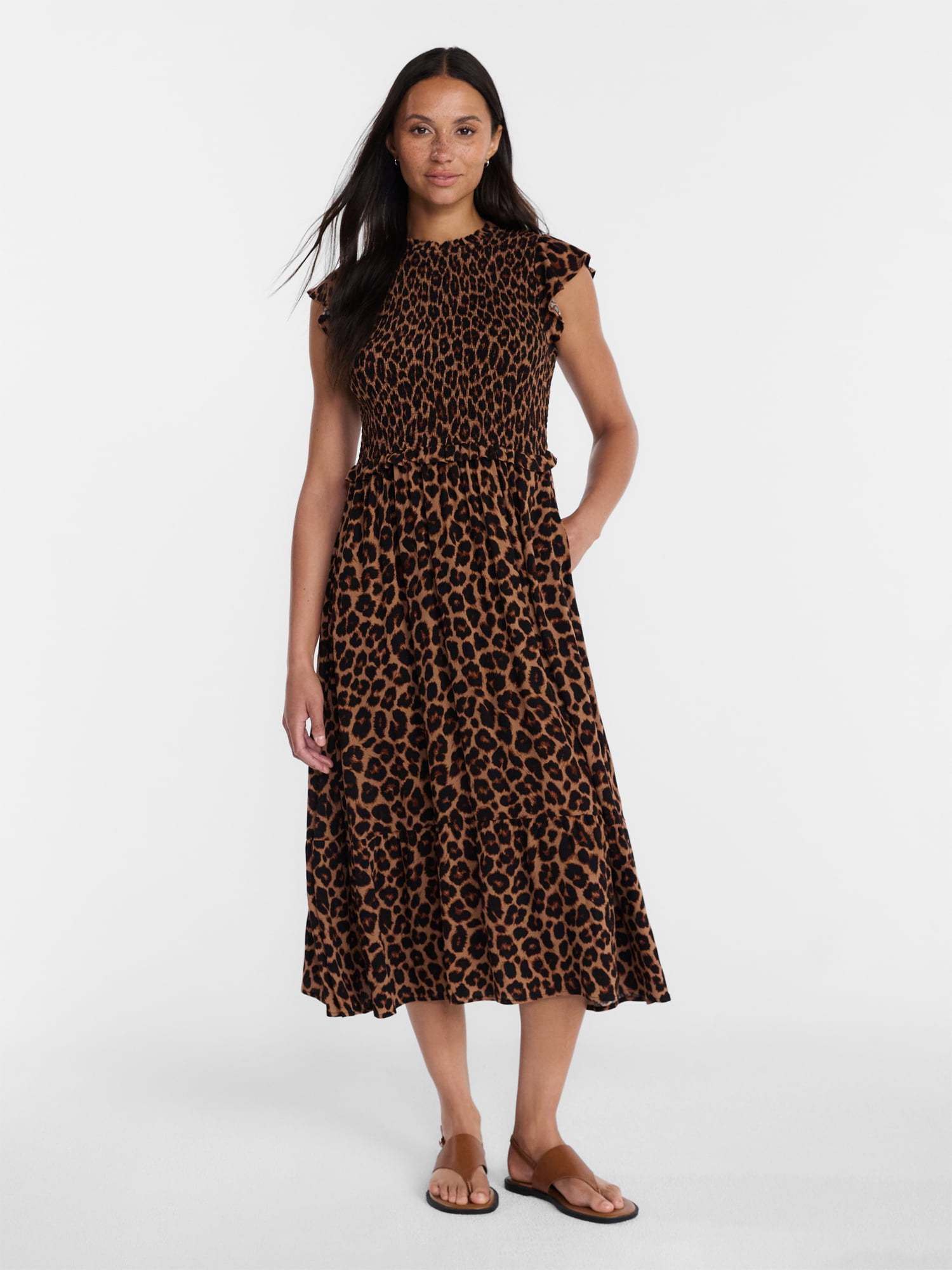 Time and Tru Women's and Women's Plus Smocked Bodice Midi Woven Dress ...