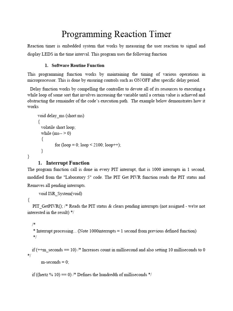 Programming Reaction Timer Report | PDF | Control Flow | Embedded System