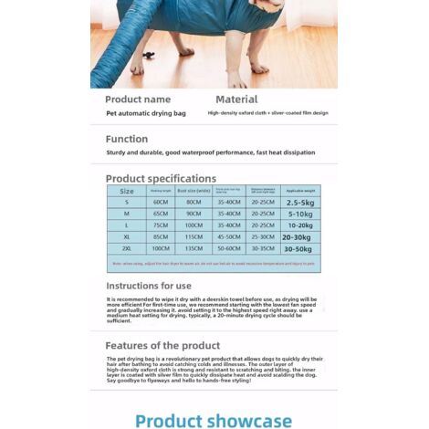 Portable Pet Dryer Blower for Bath Time, Fast-Drying Pet Grooming Sack ...