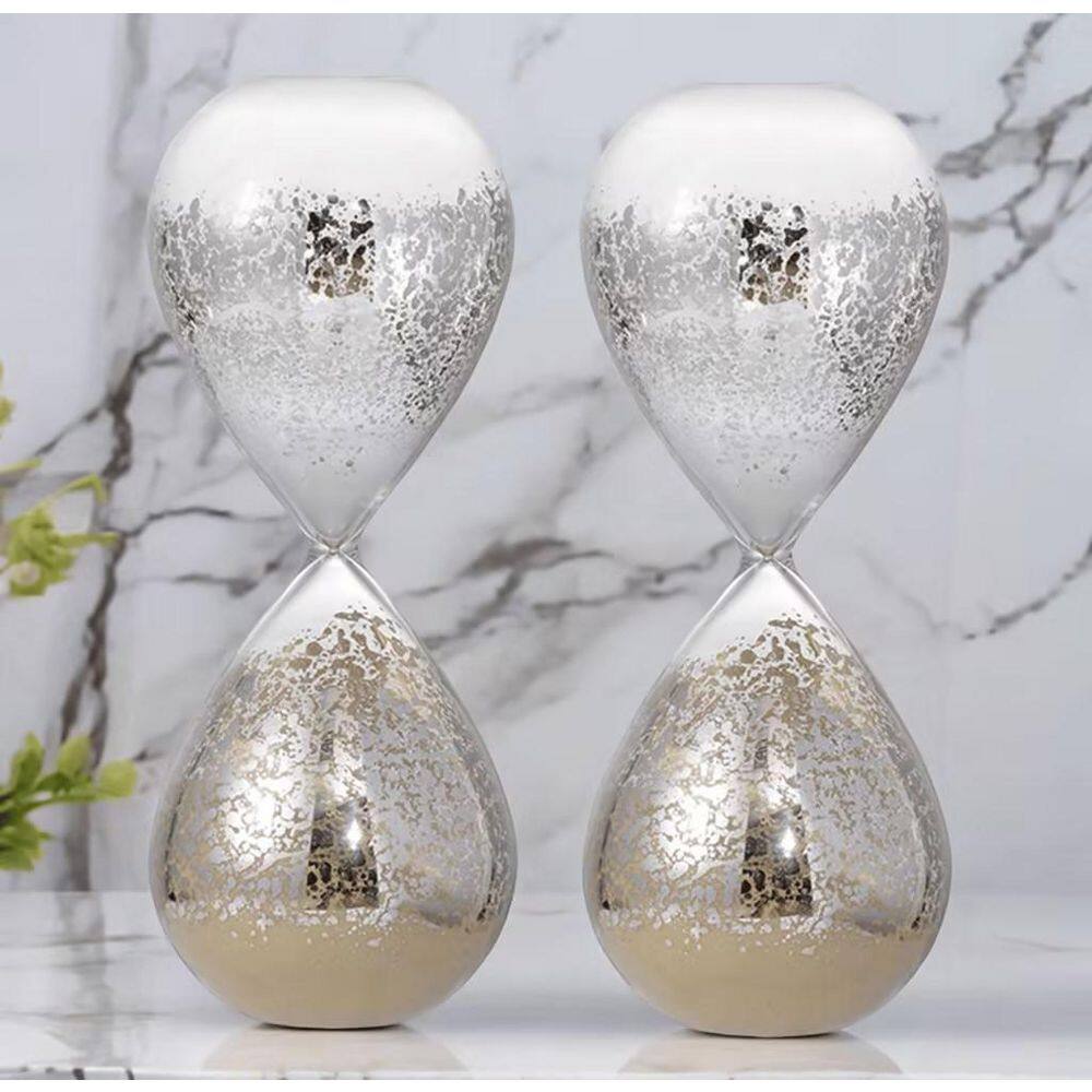 Silver Hourglass Sand Glass Timer 30-Minute Jade Sand, (Set-2 ...