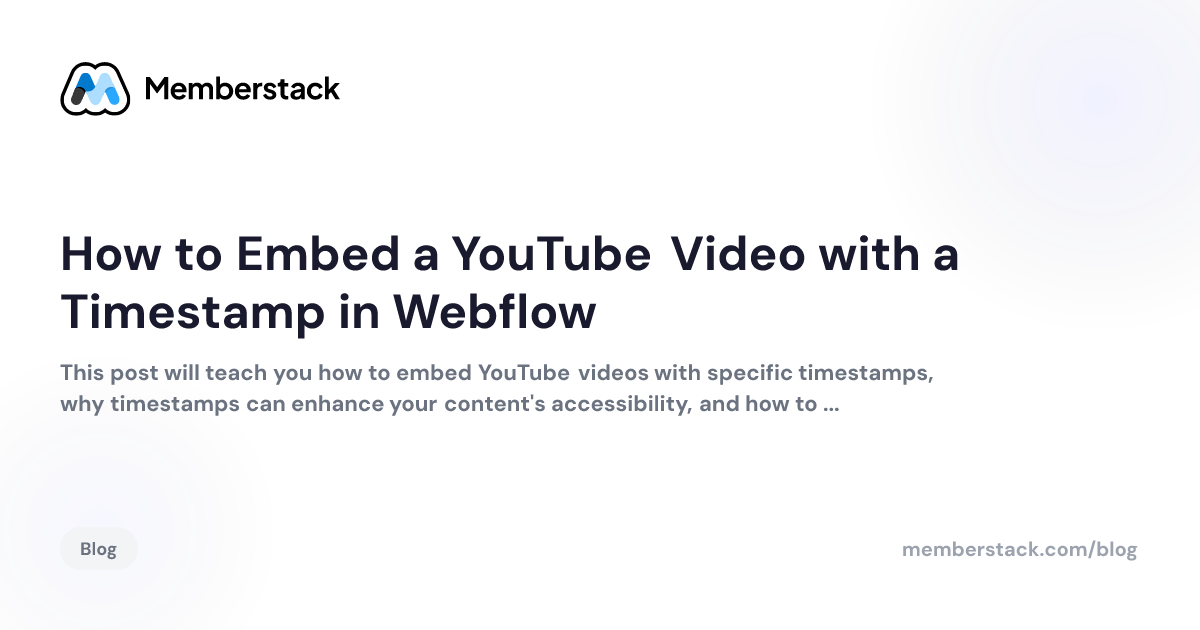 How to Embed a YouTube Video with a Timestamp in Webflow | Memberstack