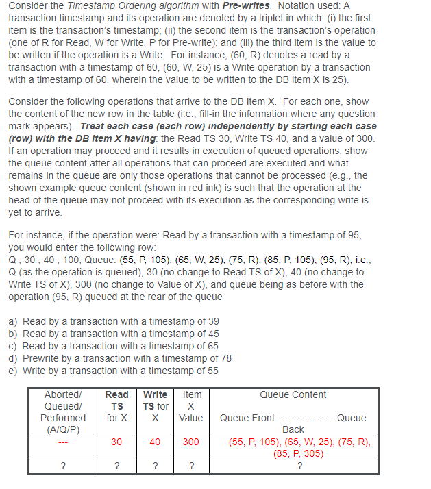 Consider the timestamp Ordering algorithm with | Chegg.com