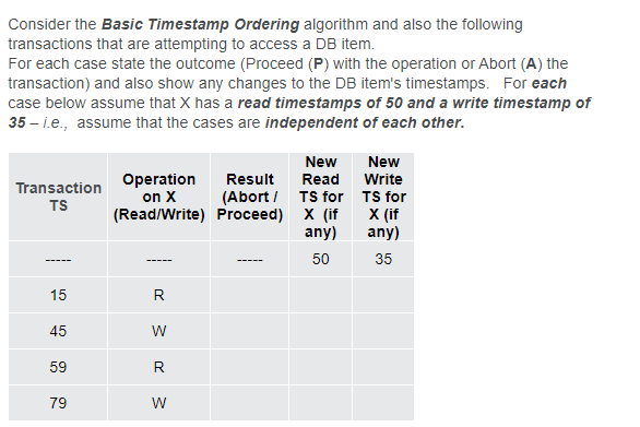Solved Consider the Basic Timestamp Ordering algorithm and | Chegg.com