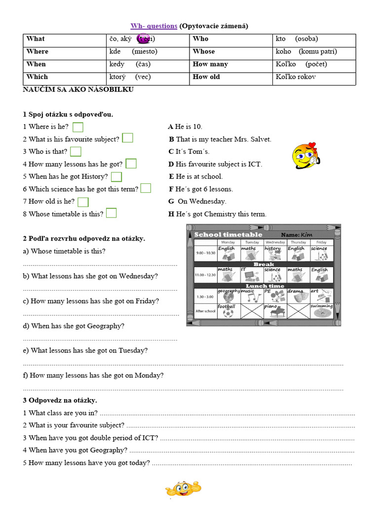 Wh- Questions and Timetable Exercises | PDF | Language Arts & Discipline