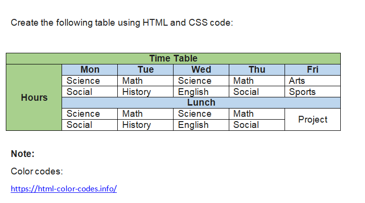 Solved Make a time table using html and css as shown in | Chegg.com