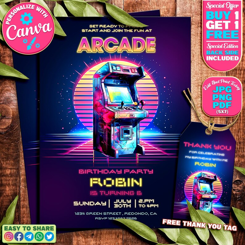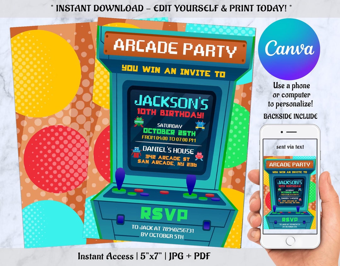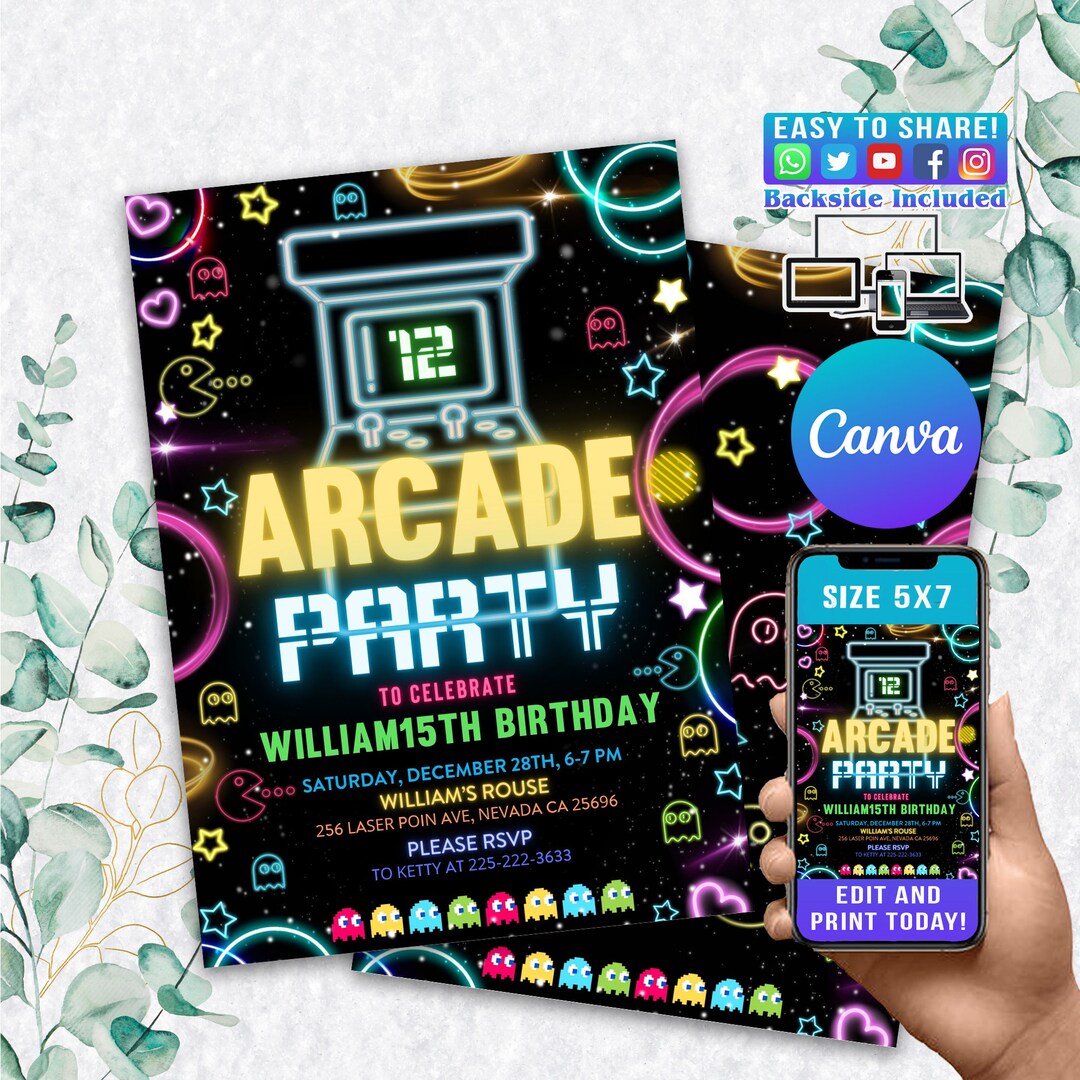 Arcade Birthday Invitation , Editable Arcade Birthday Invitation ...