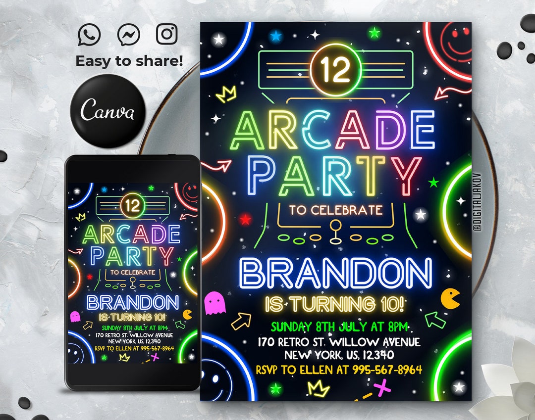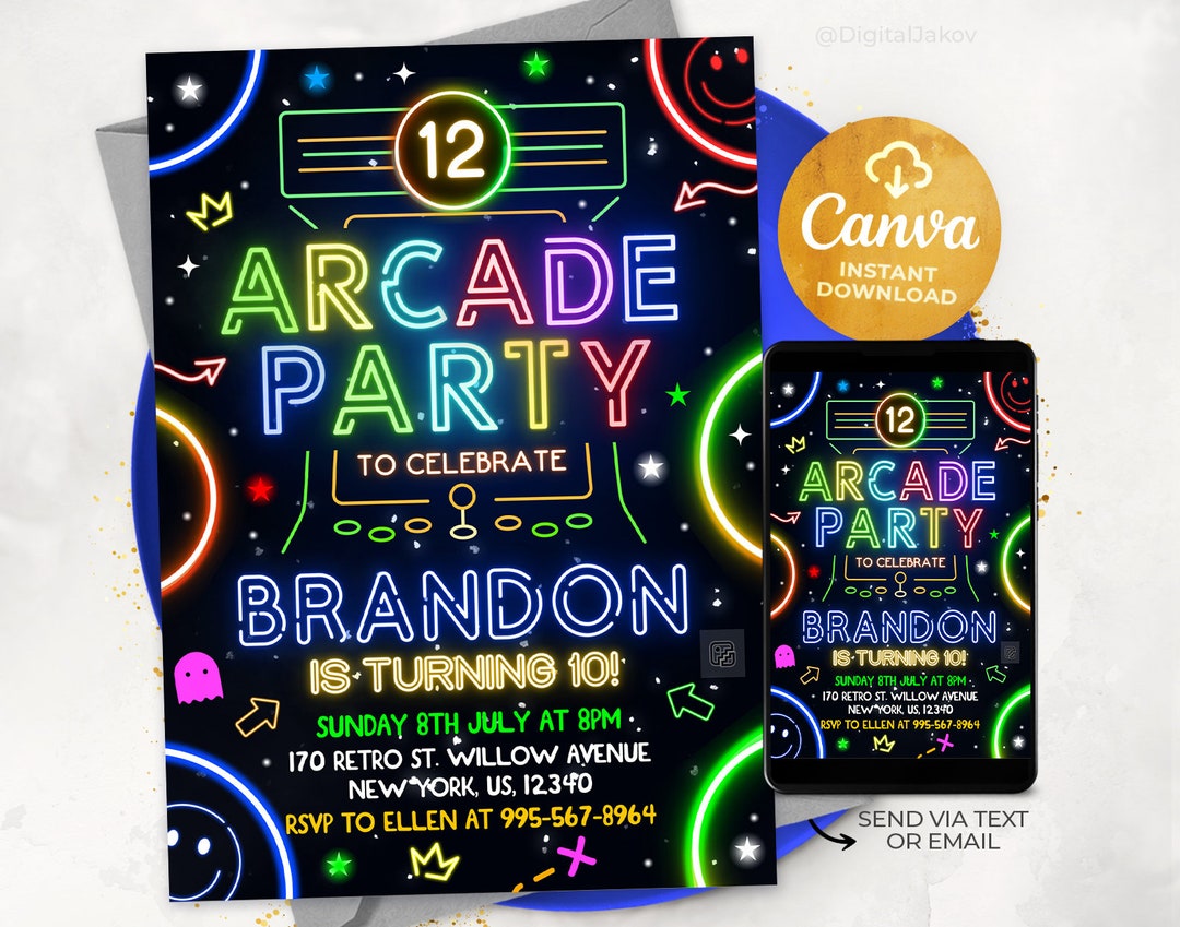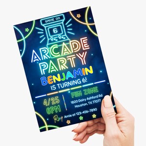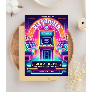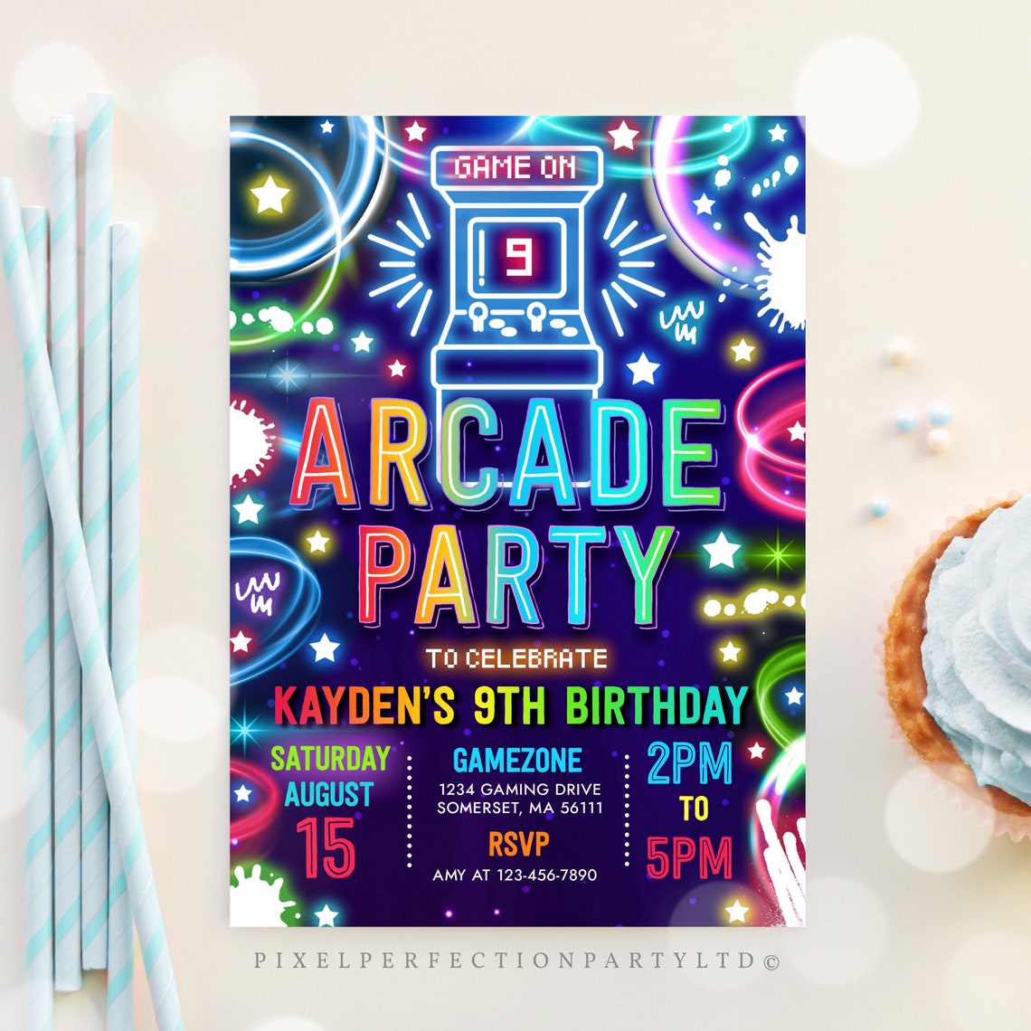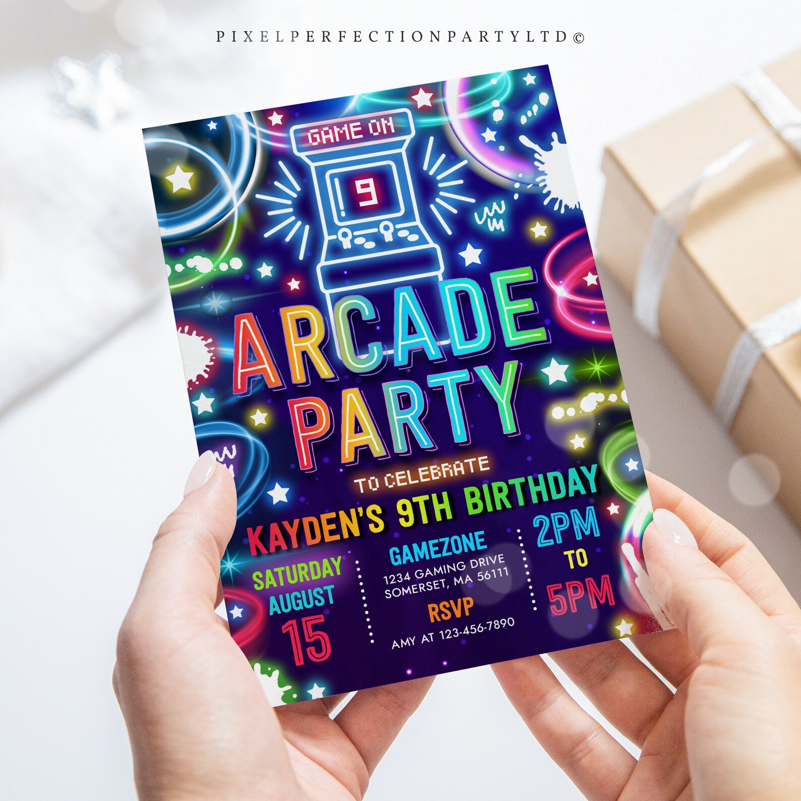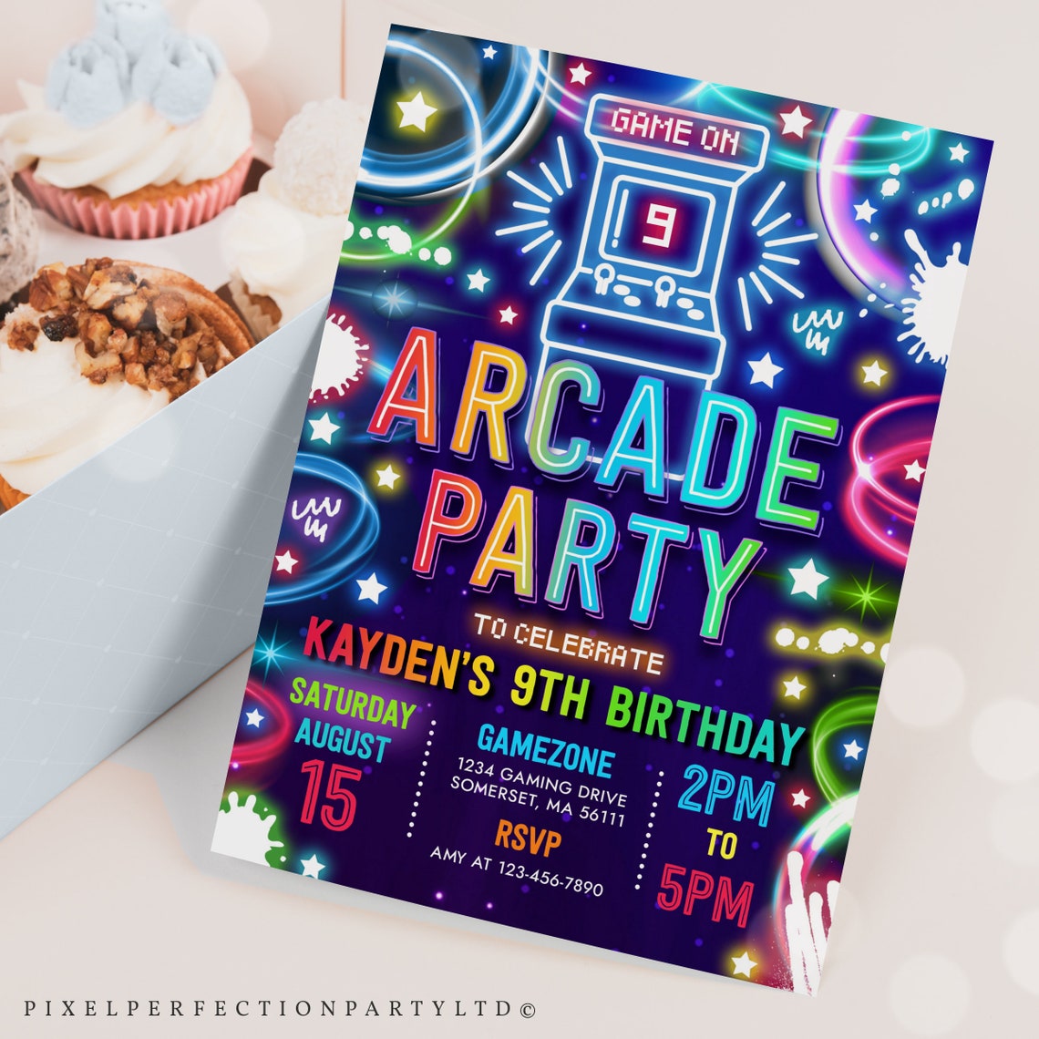 Arcade Birthday Invitation, Arcade Game on Birthday Party, Neon Arcade ...