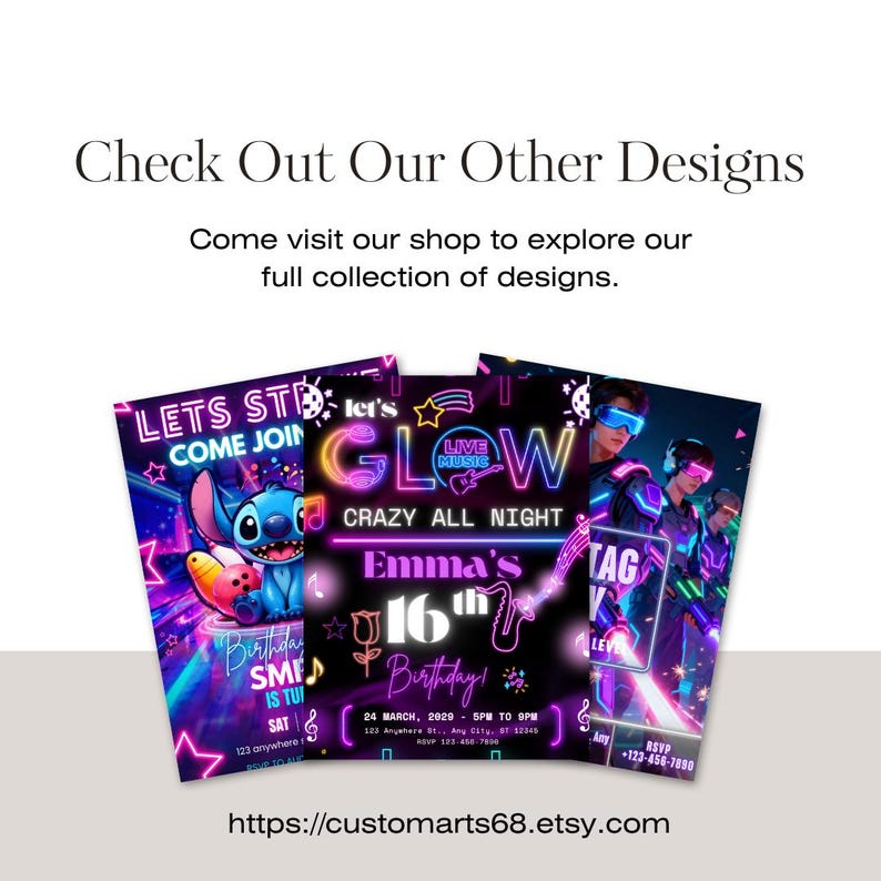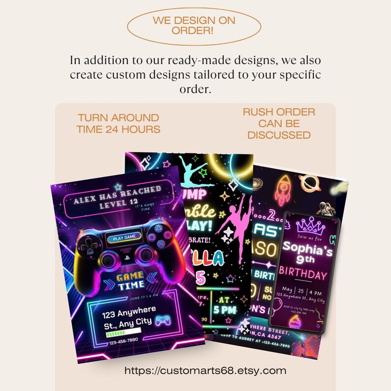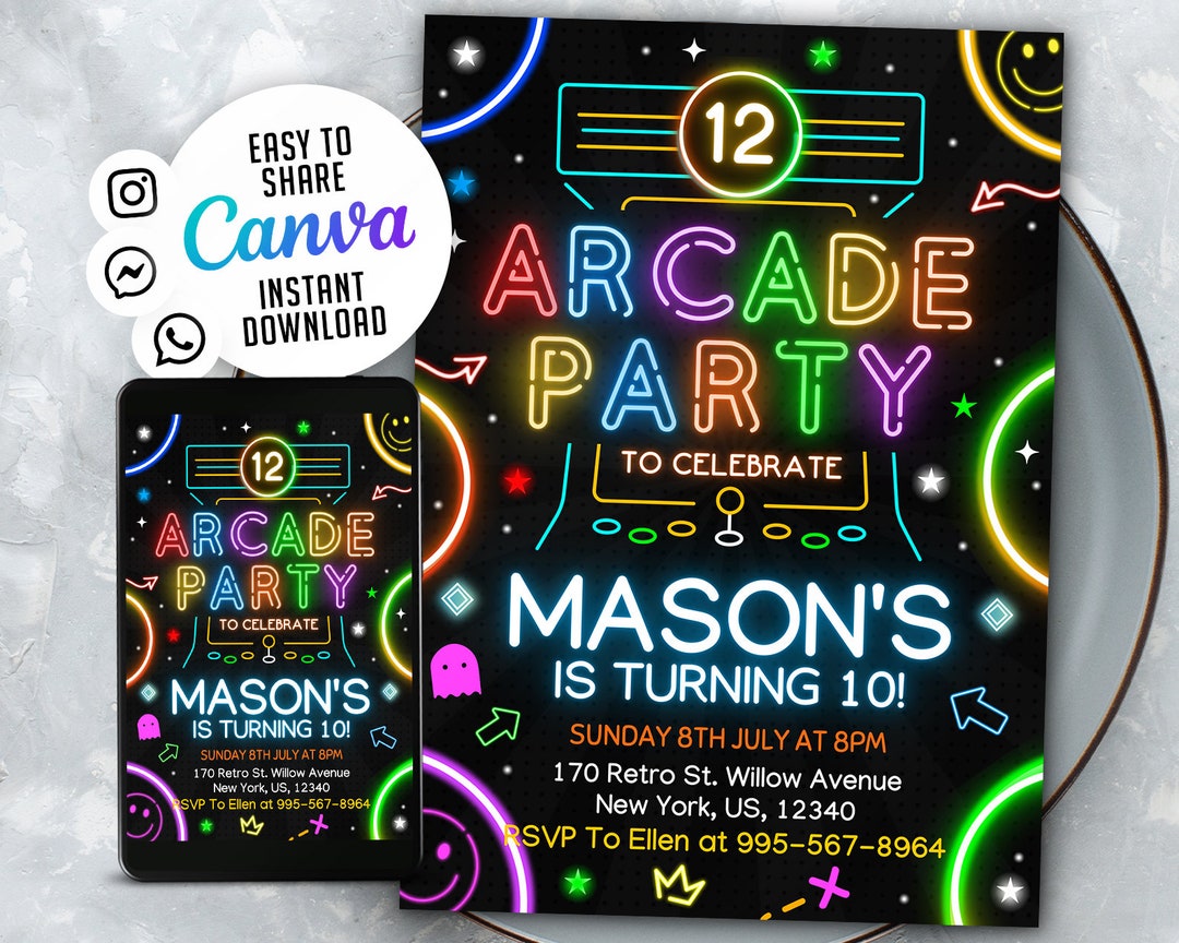 Editable Arcade Party Birthday Invitation Boy Neon Glow Retro - Etsy