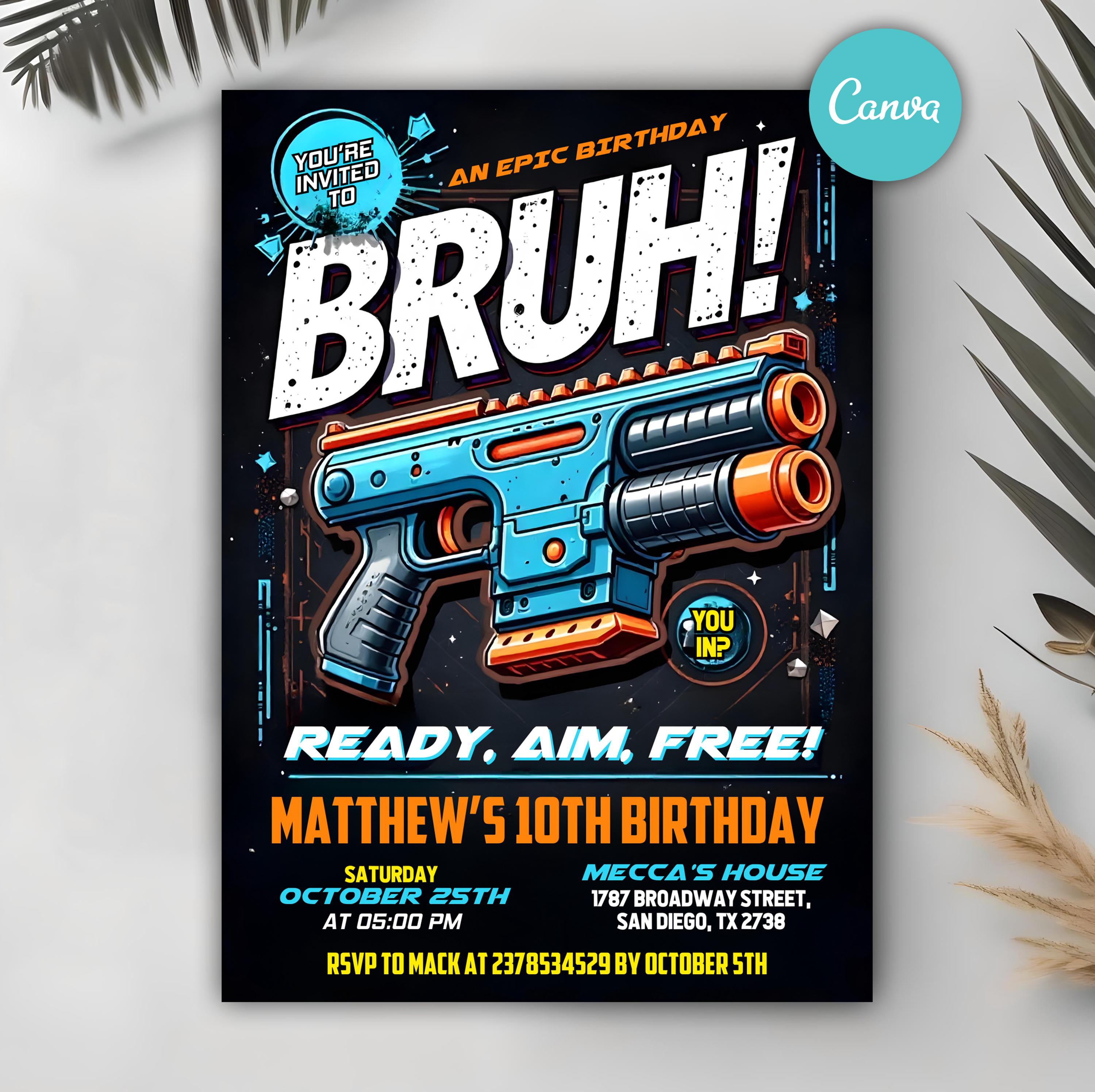 Editable Birthday Party Invitation, Action Theme Invitation, Game Time ...