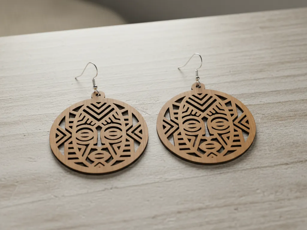 Circular wooden earrings with tribal mask pattern Tribal Ethnic Boho ...