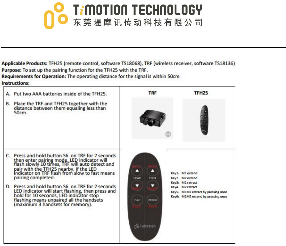 TiMOTION Technology TFH25 WIRELESS REMOTE CONTROL User Manual