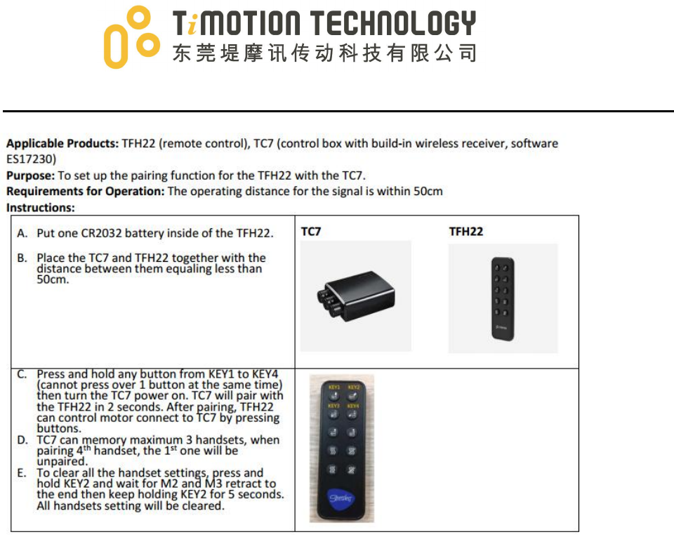 TiMOTION Technology TFH22 WIRELESS REMOTE CONTROL User Manual