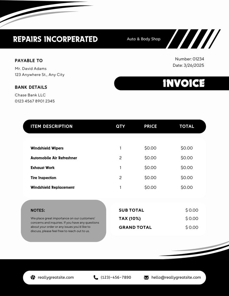Auto Repair Invoice Templates: Download in Excel, PDF & Word