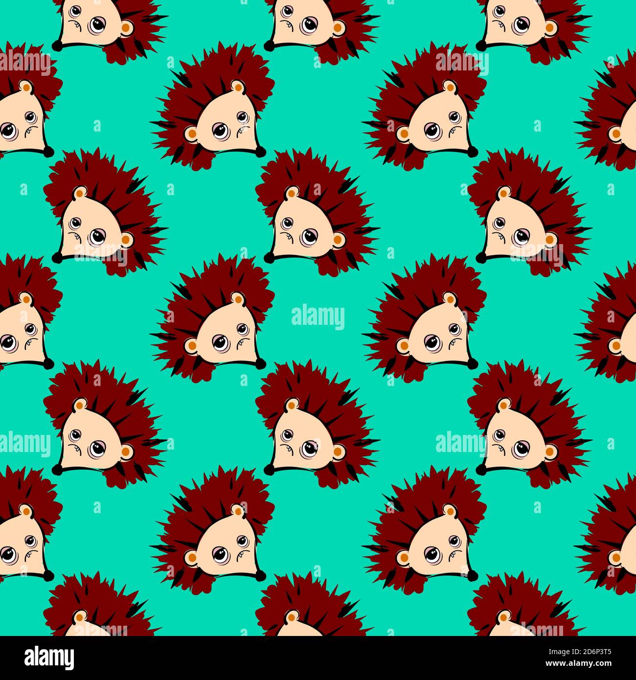 Tired hedgehog, seamless pattern on green background Stock Vector Image ...
