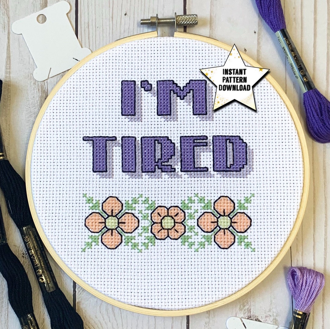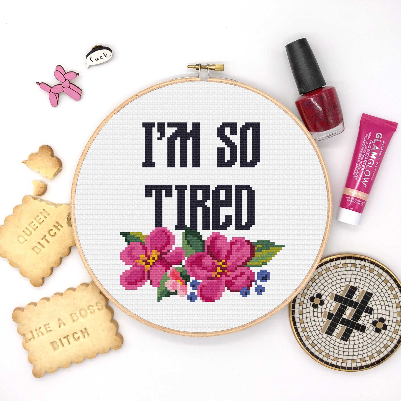 I'm so Tired Cross Stitch Pattern, Funny Needlepoint (PDF Pattern) - Etsy