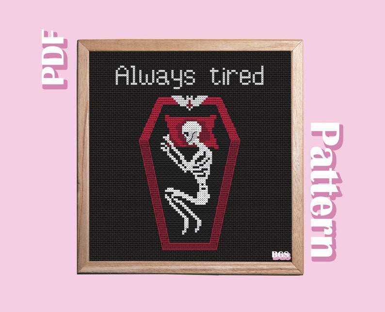 Always Tired Coffin Cross Stitch Pattern, PDF Instant Download Chart ...